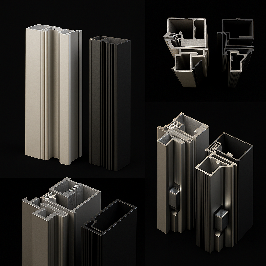Profile aluminiowe o grubości 43 mm i 55 mm przeznaczone są do systemów drzwi z ukrytą ościeżnicą. Umożliwiają estetyczny montaż skrzydła zlicowanego ze ścianą, zachowując jednocześnie pełną stabilność konstrukcji.